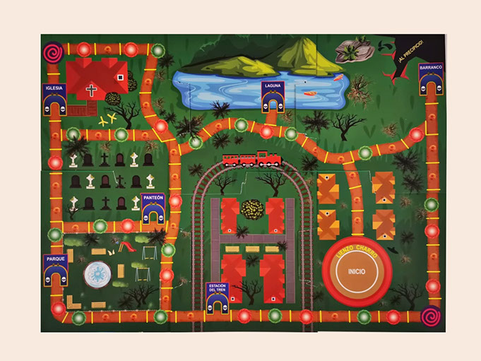 Para lograrlo, los jugadores deberán pasear por todo el pueblito (tablero), visitando lugares como el panteón, la iglesia, el barranco, la estación de tren, el parque y la laguna.