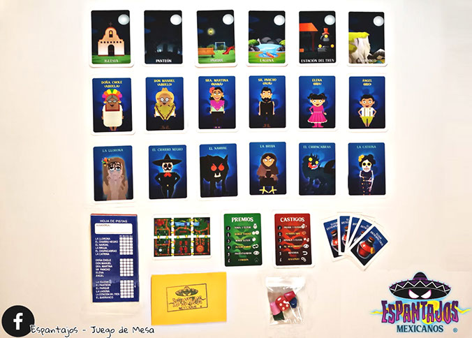 Espantajos mexicanos es un juego de mesa de estrategia y deducción, donde el objetivo es conseguir elixir anti espectros y salvar a un integrante de la familia Cruz que desapareció gracias a uno de los siniestros espantajos: La Llorona, el Charro Negro, la Bruja, el Chupacabras, la Catrina y el Nahual.